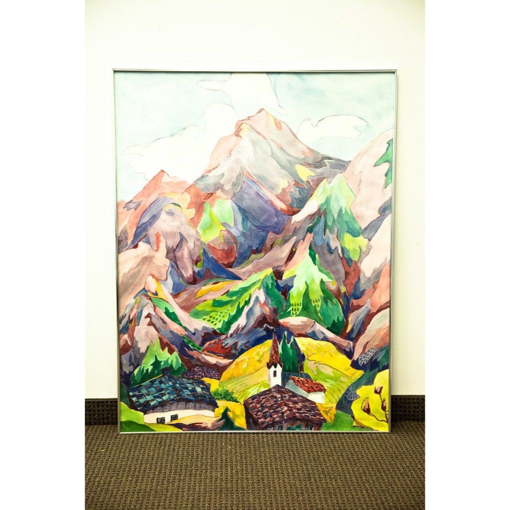 1970's Johanna Haas Art Watercolor Painting, "The Alps Pastel Mountains", Signed Framed Fine Art Local Pick Up Available