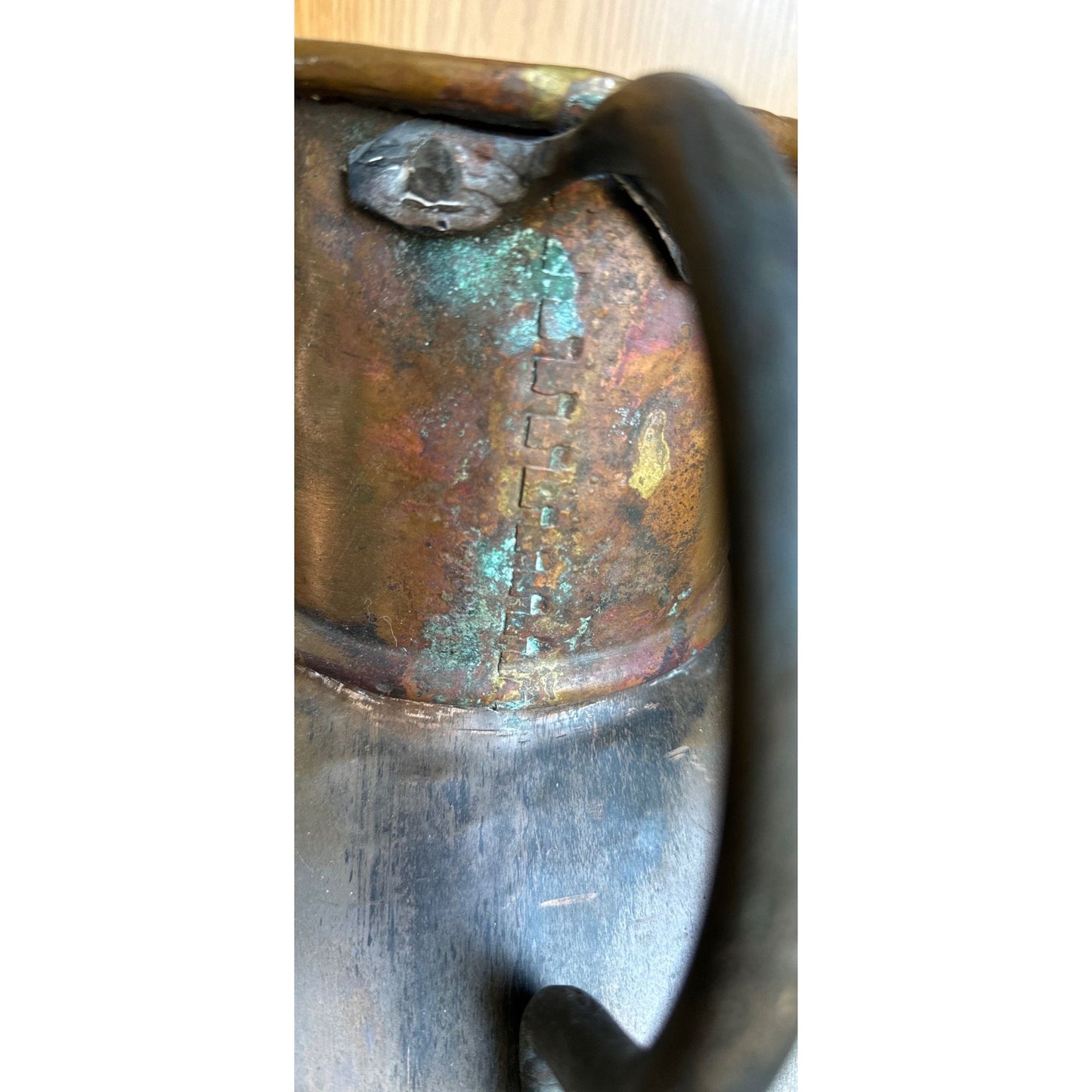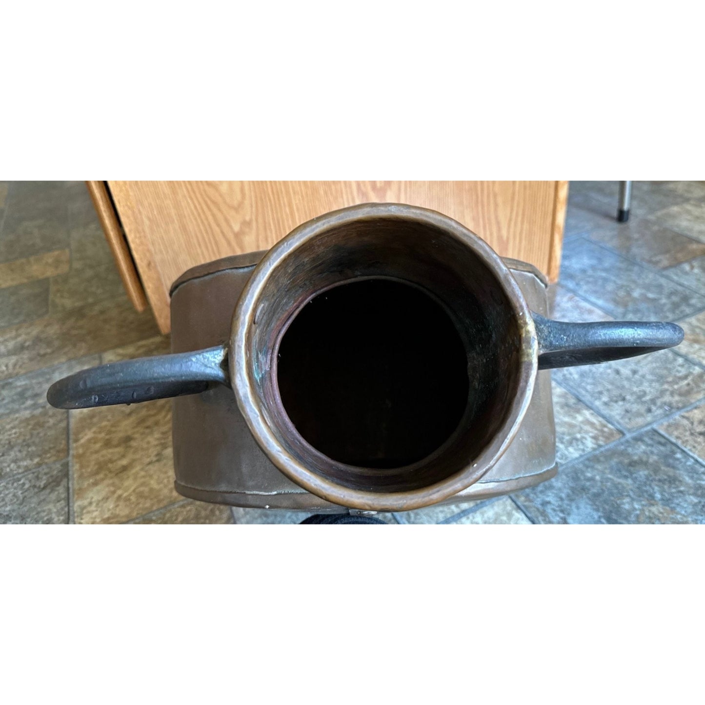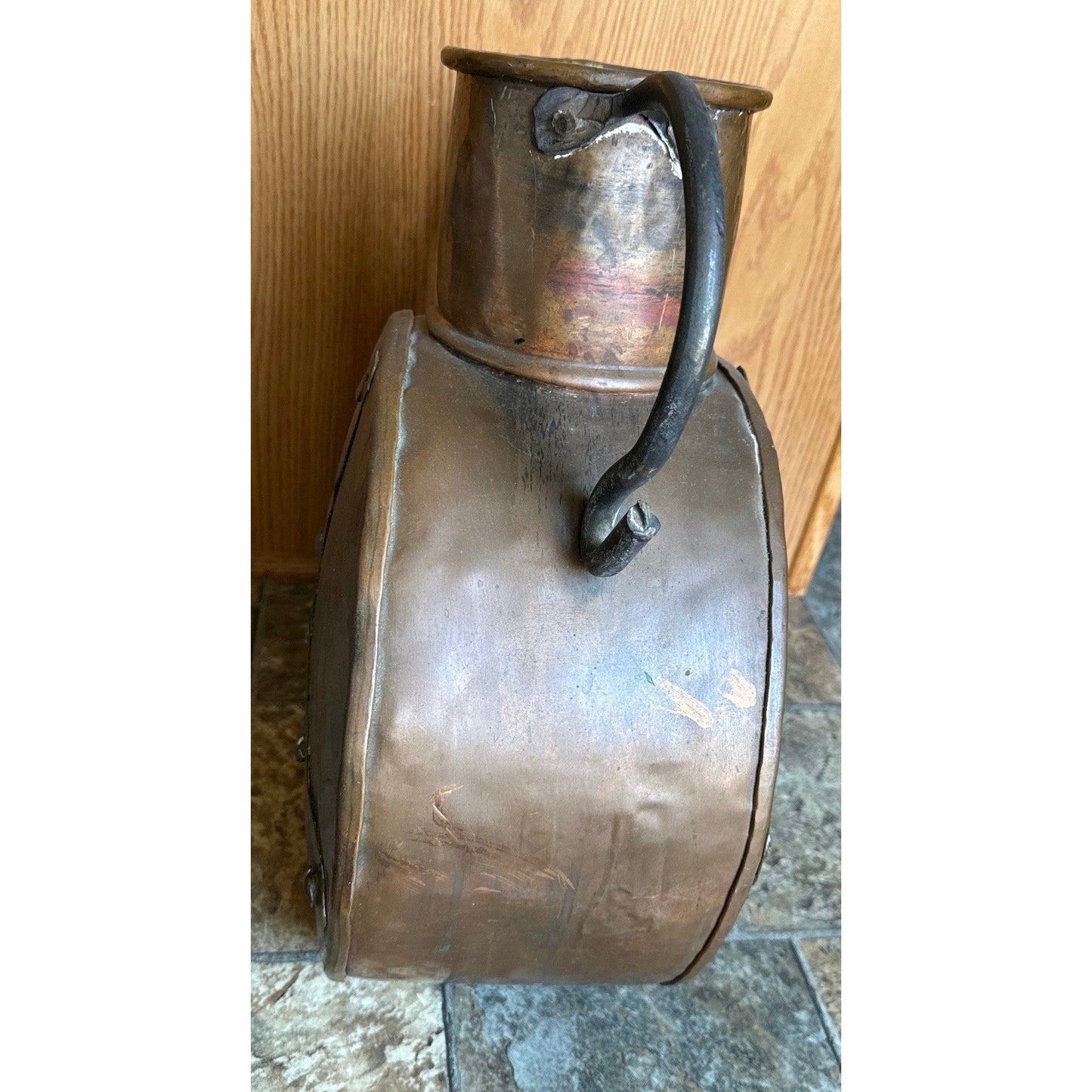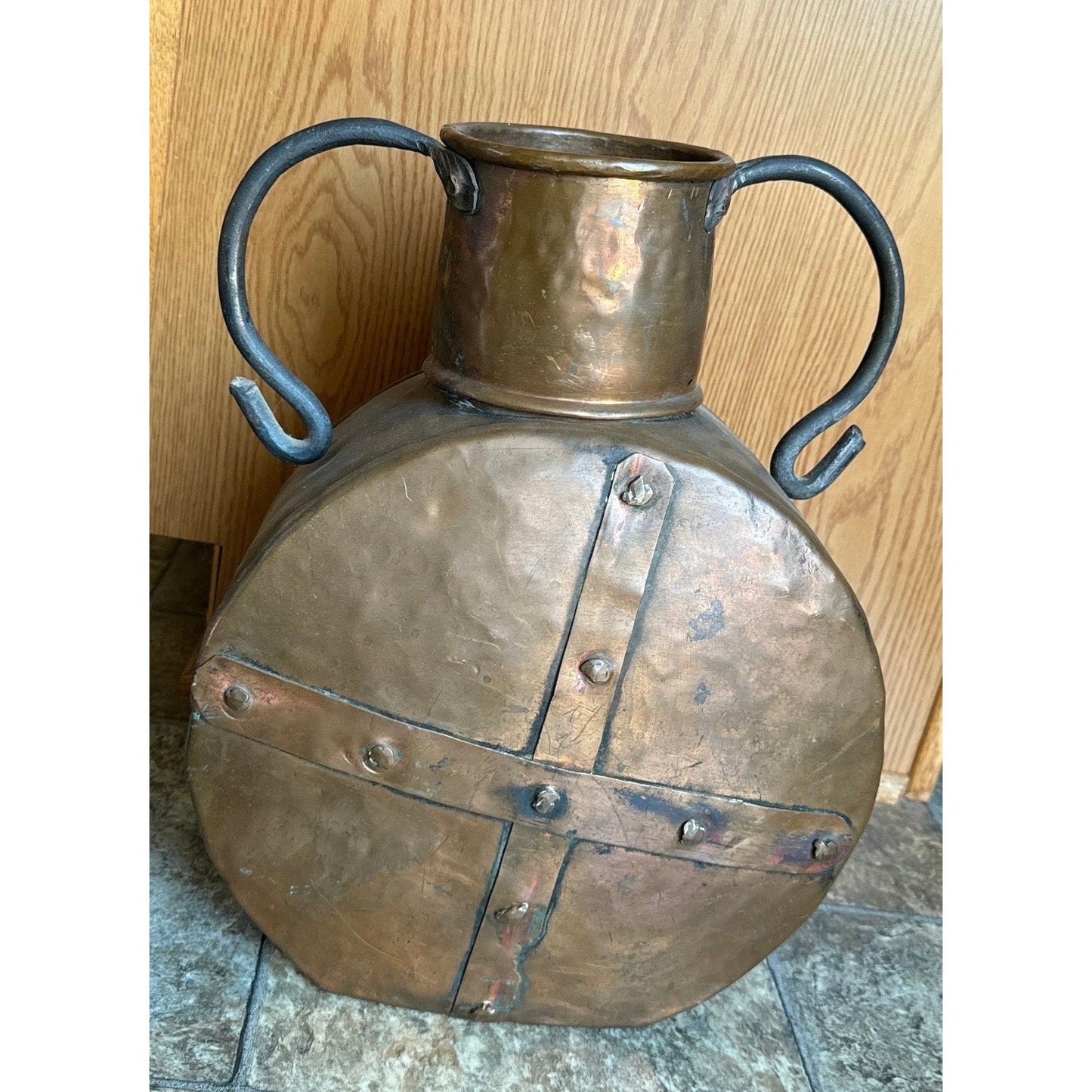 This is a robust, hand-forged copper and iron water vessel/boqa is from the 19th century. It features a hand-forged iron handles.