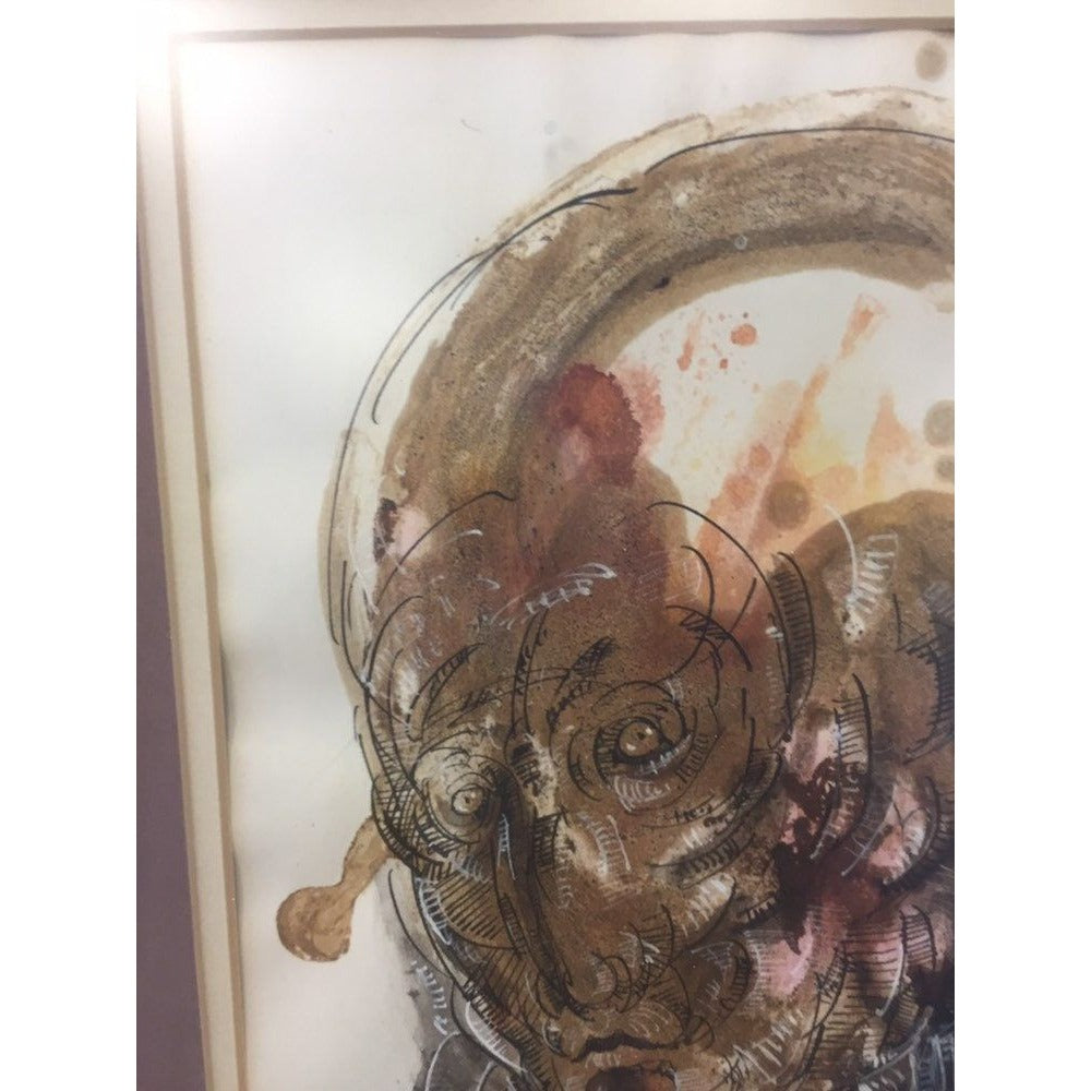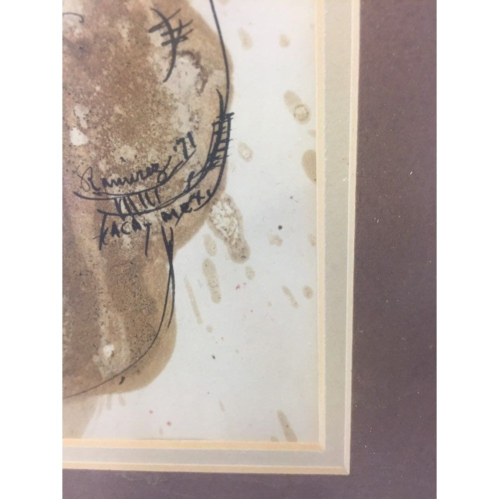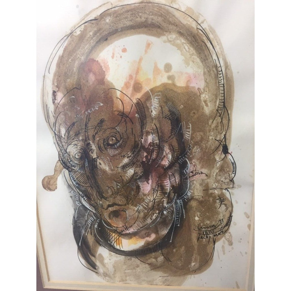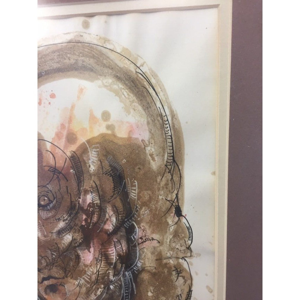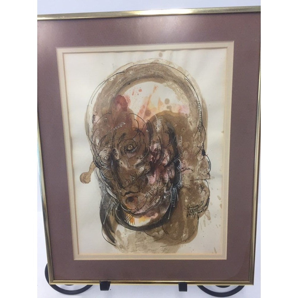 Abraham Ramirez Painting "A Face", Watercolor And Ink On Paper '71 Mexico