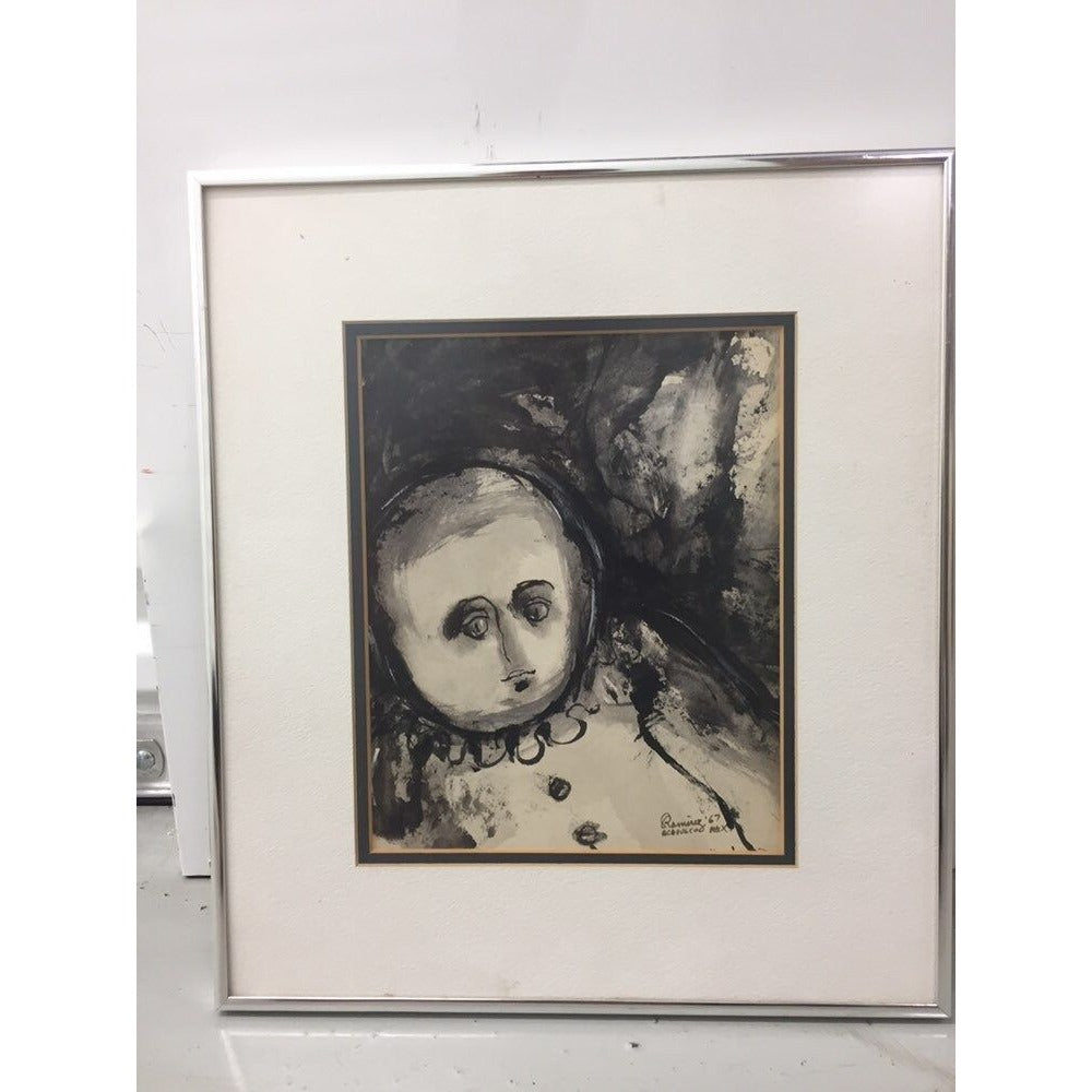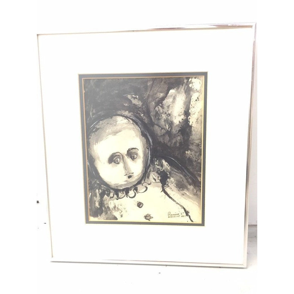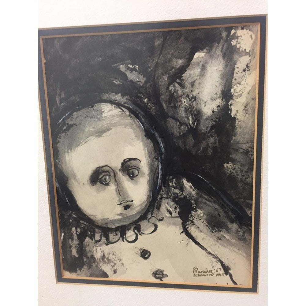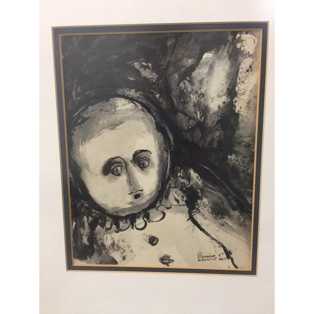 Abraham Ramirez Painting "Clown", India Ink On Paper 1967 Mexico