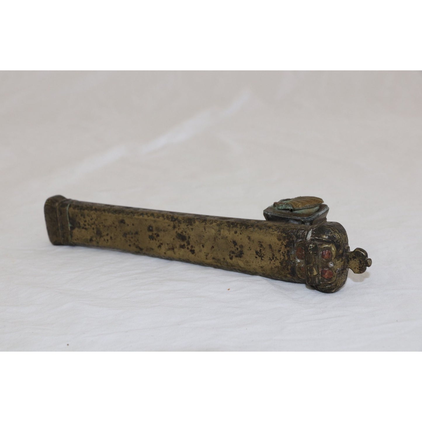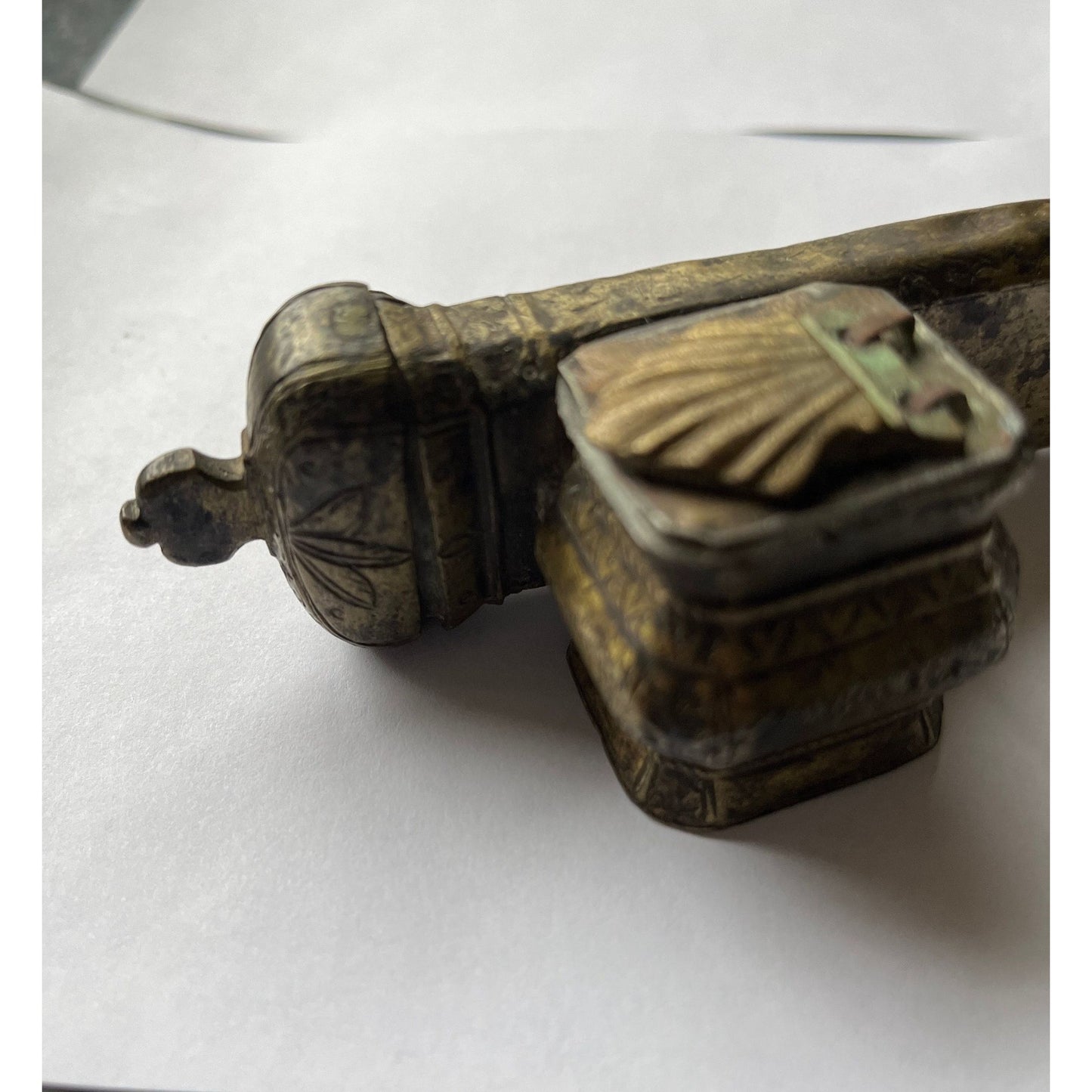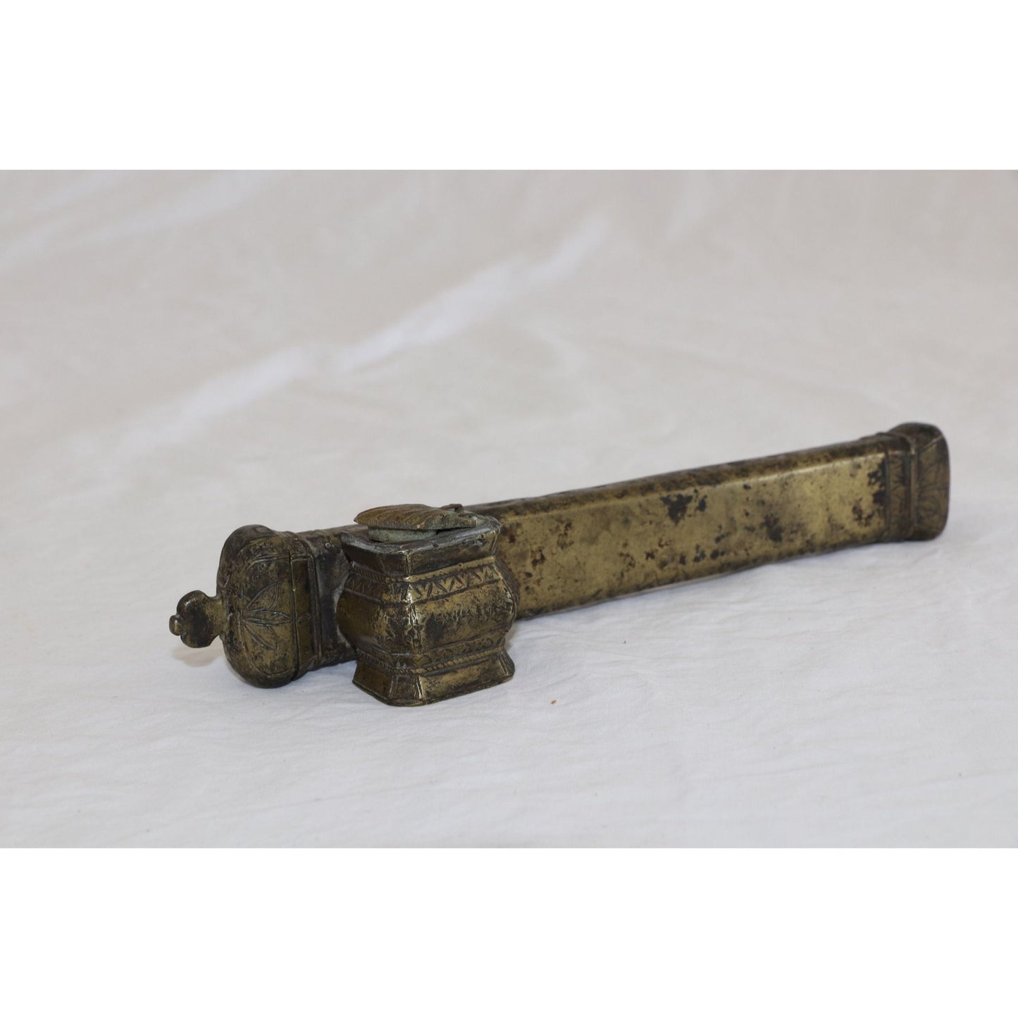 Antique 19th Century Brass Decorated Islamic Ottoman Persian Qalamdan Inkwell