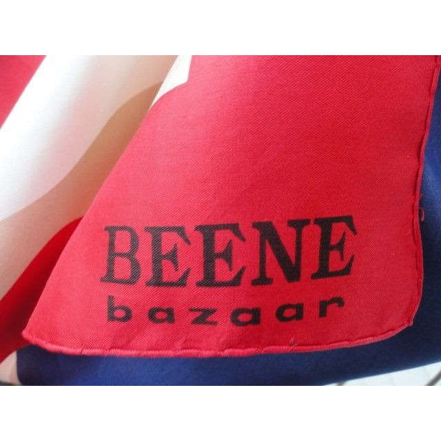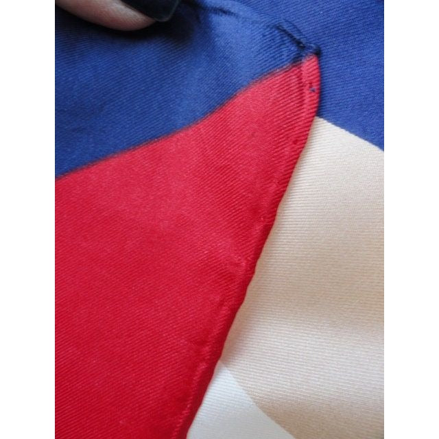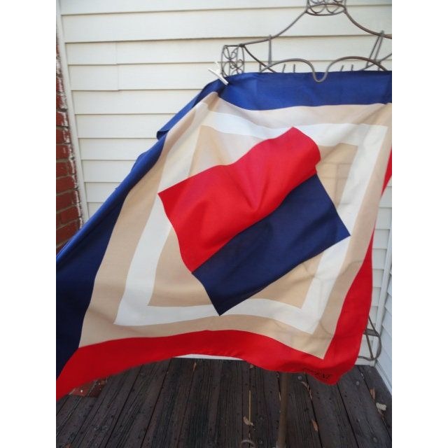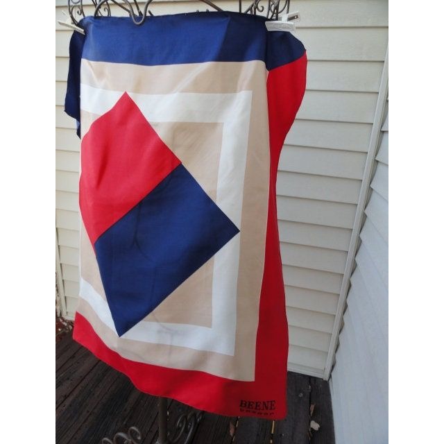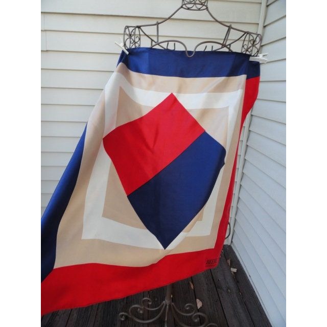 BEENE Bazaar Scarf Vintage 1970's All Silk Blue Red White Beige Squares