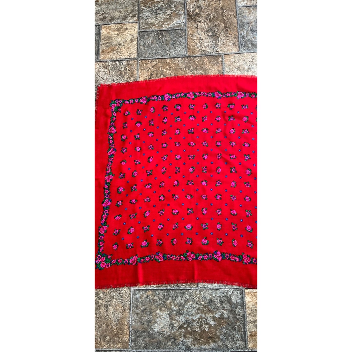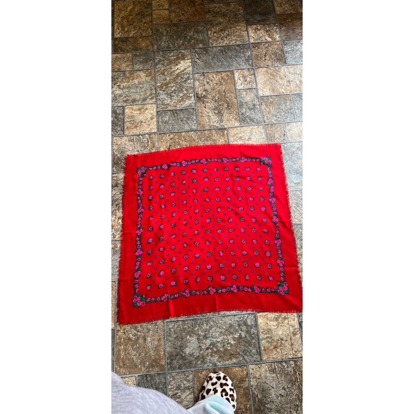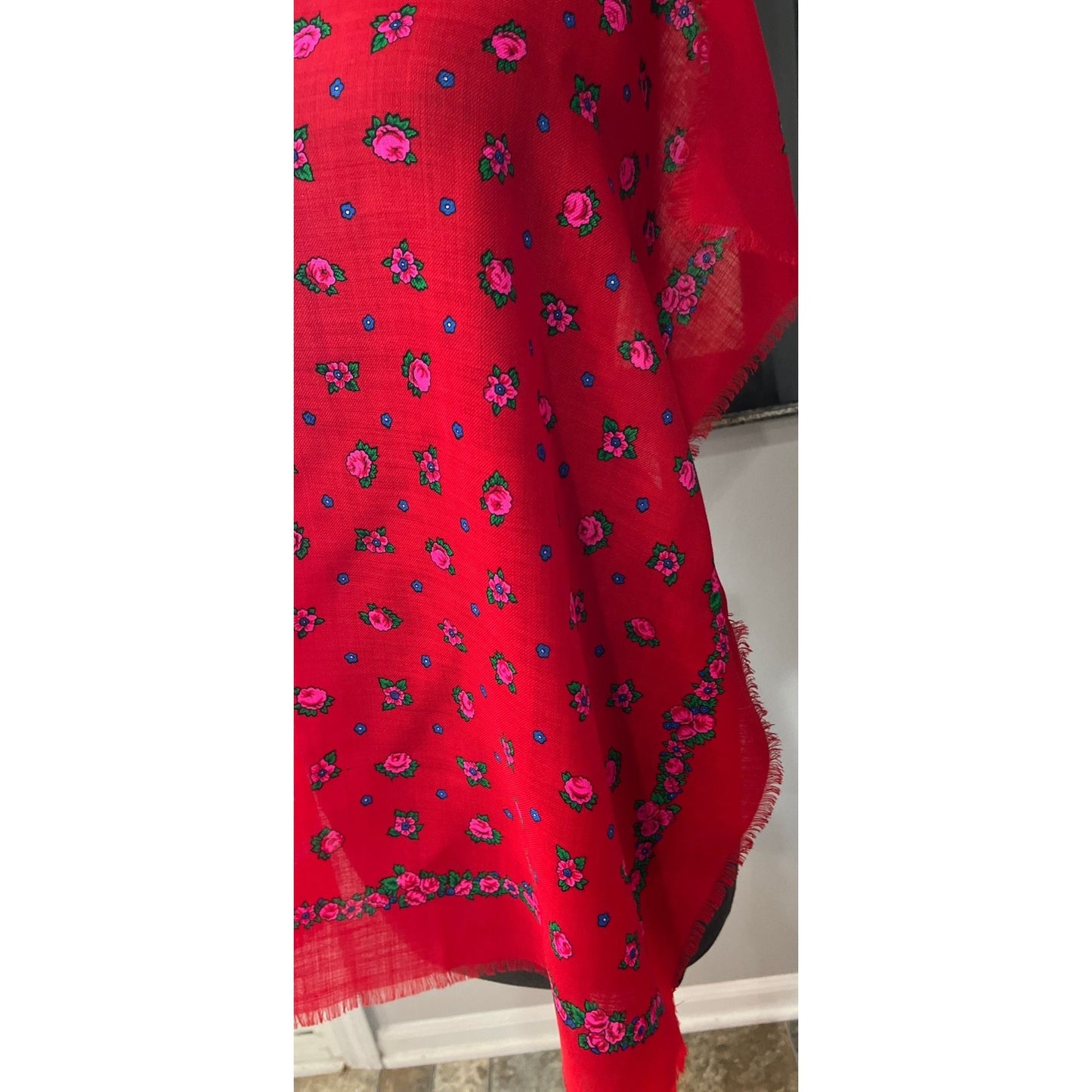Vintage 1970’s LAINE 100% Wool Red Floral Scarf Handprinted Japan CA 00098