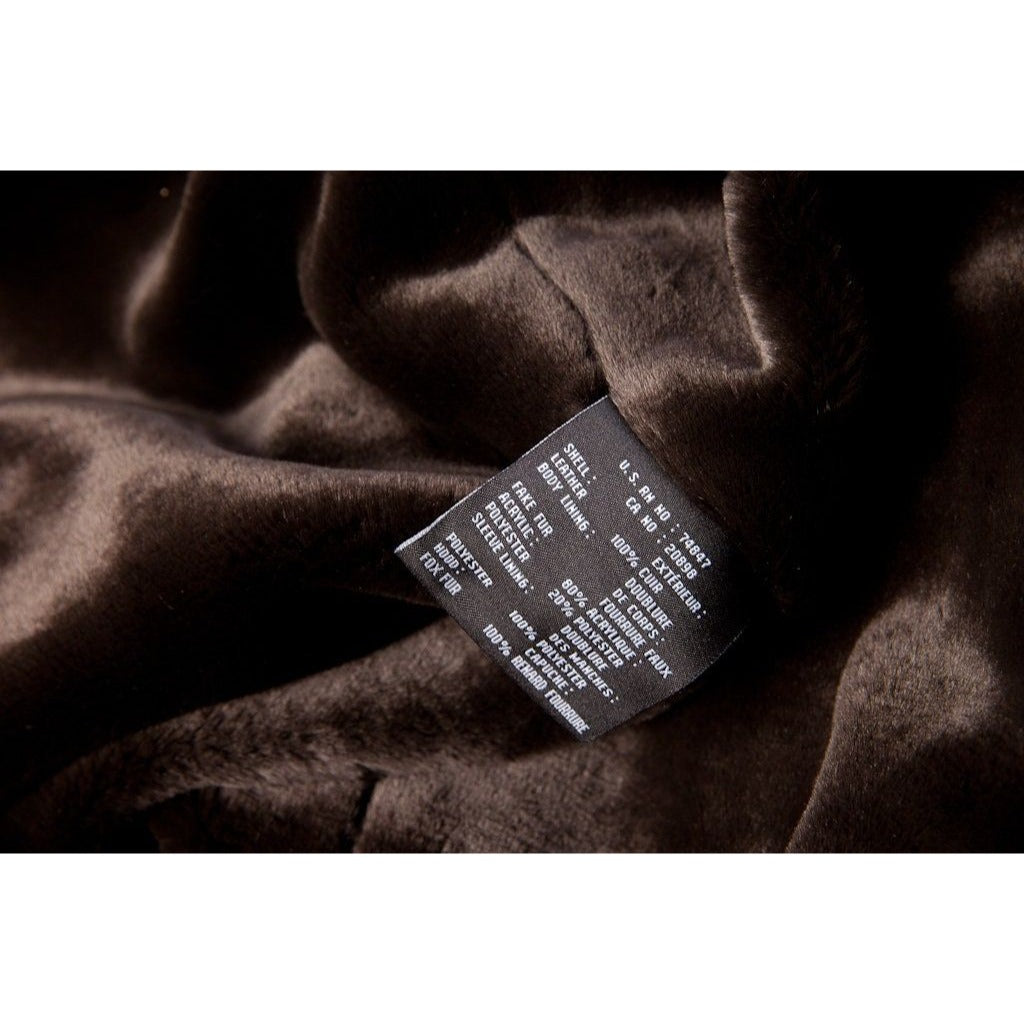 Mid length leather coat, interior is faux fur with the outside of the hood being fox fur.