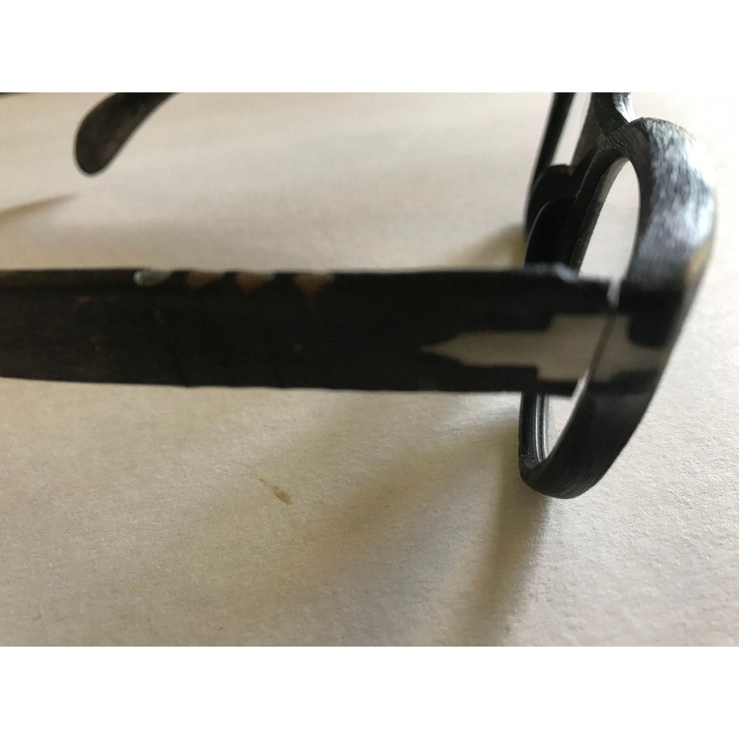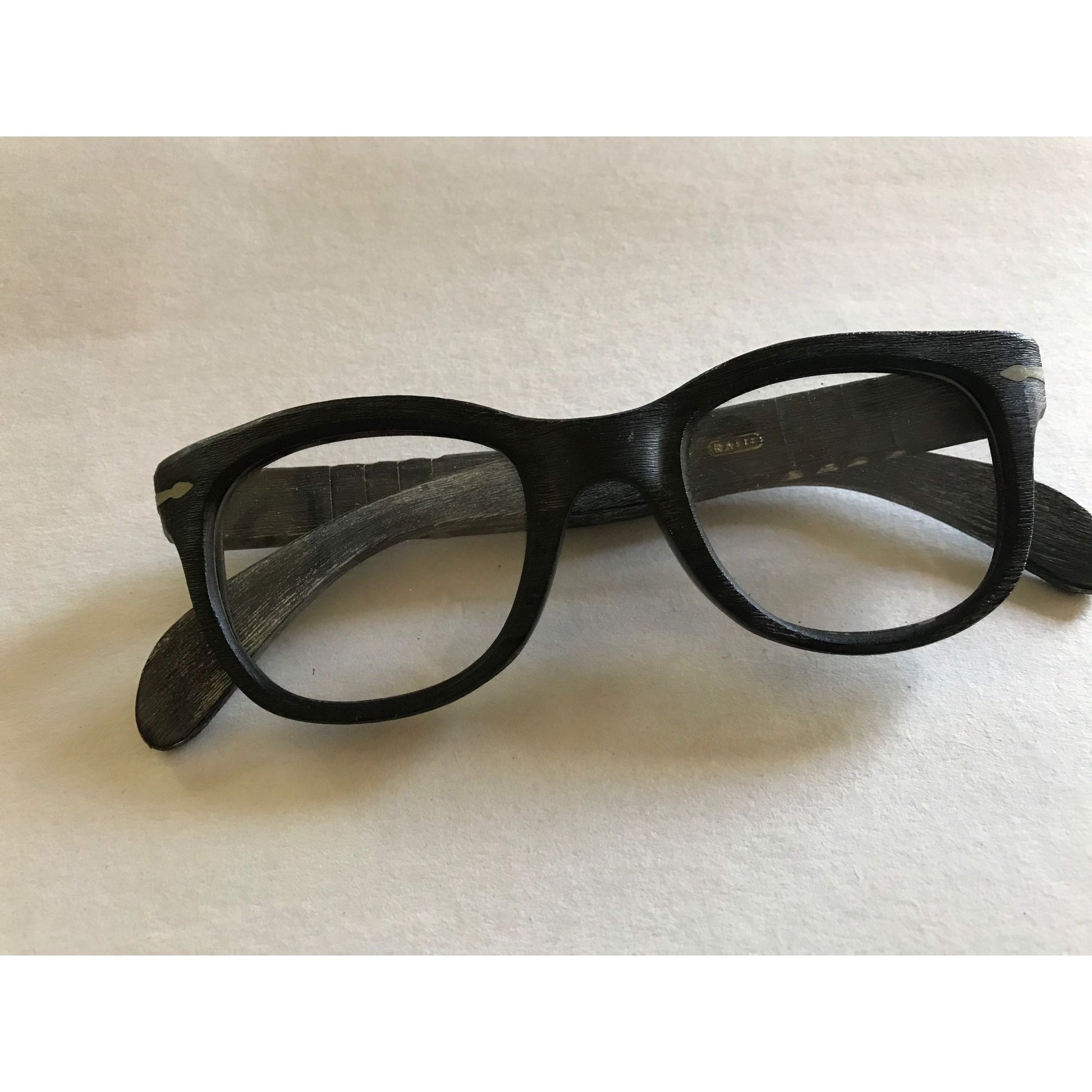 Vintage Eye Glasses 1940's-1950’s Browline Glasses Black RA111 Made In Italy Wood Frames With Silver Tones