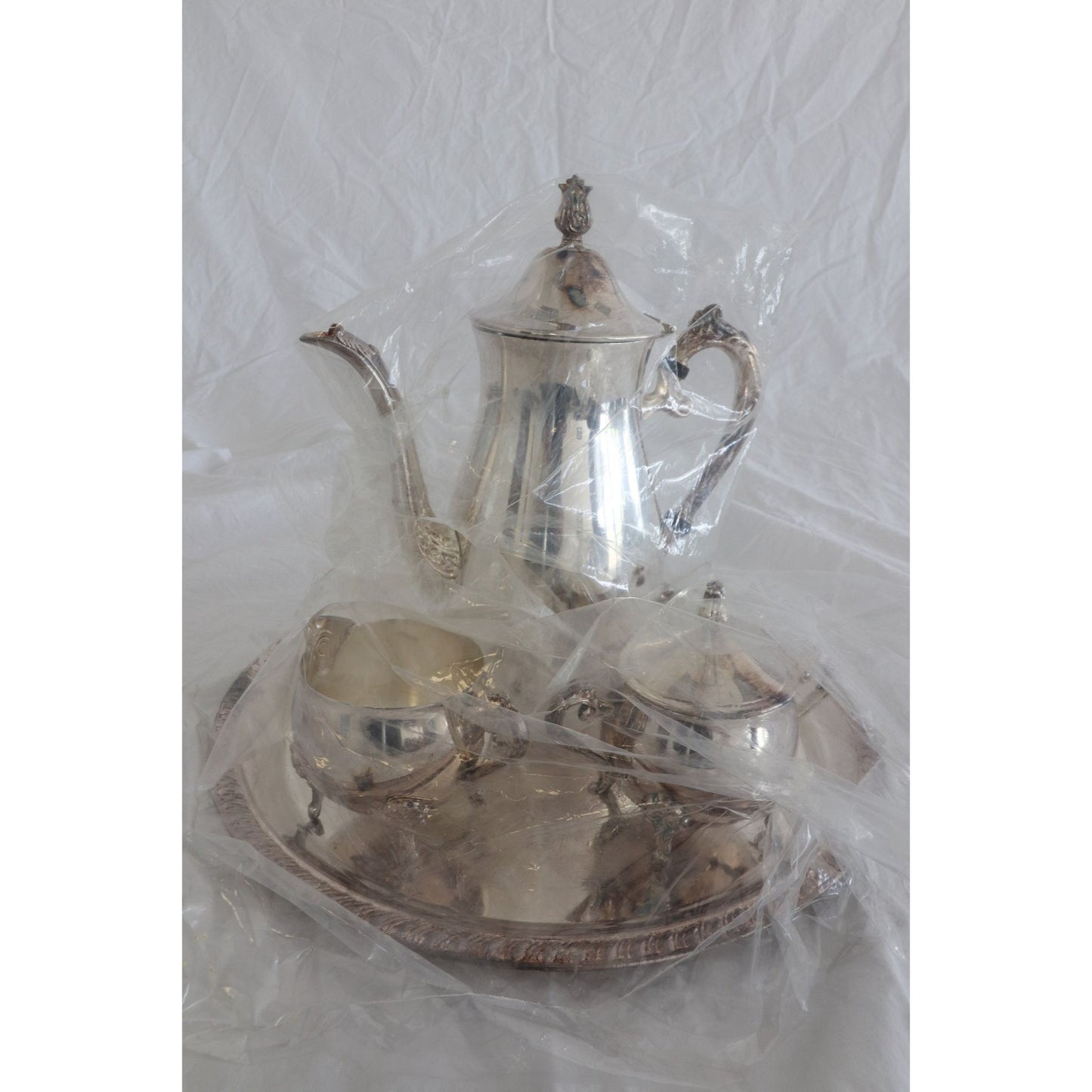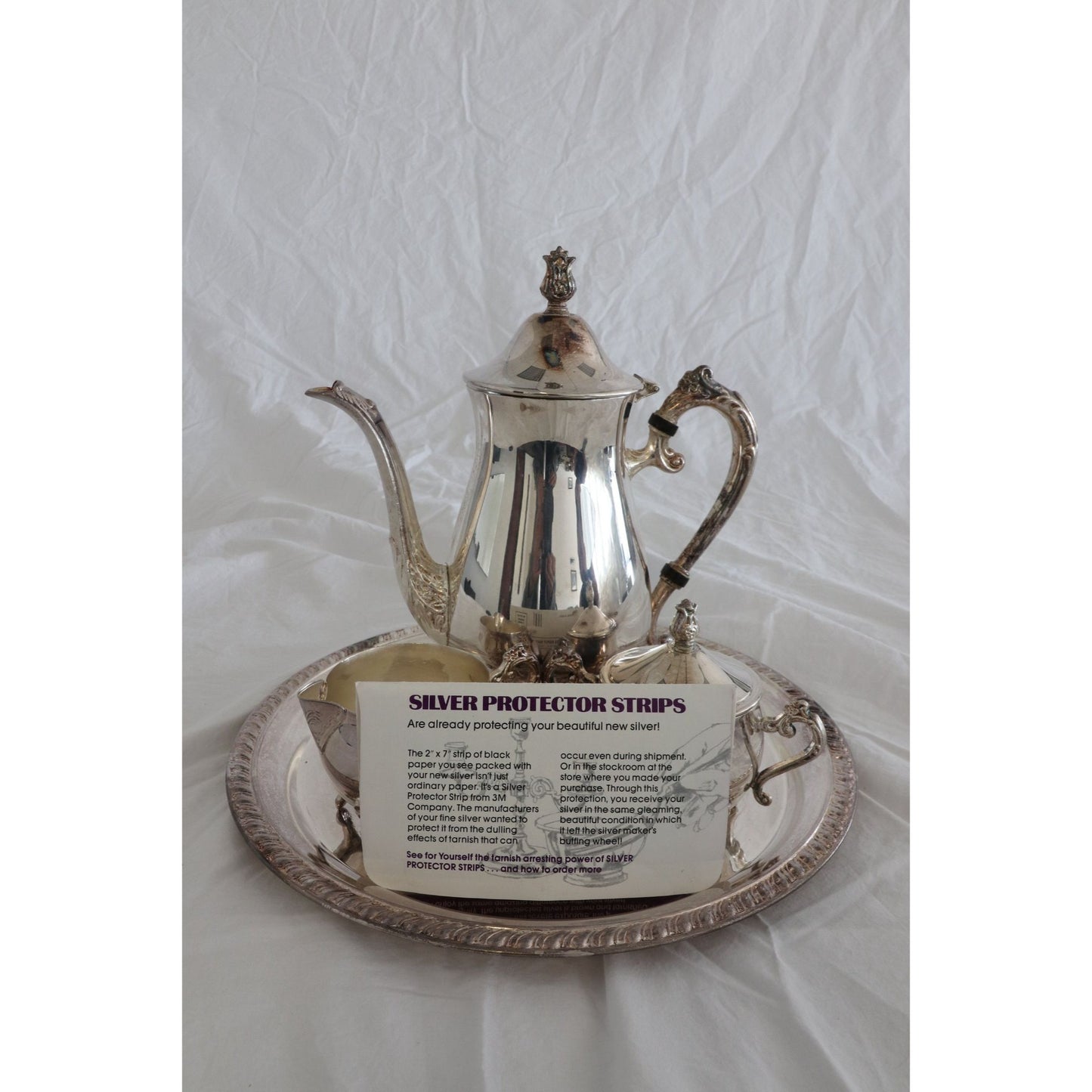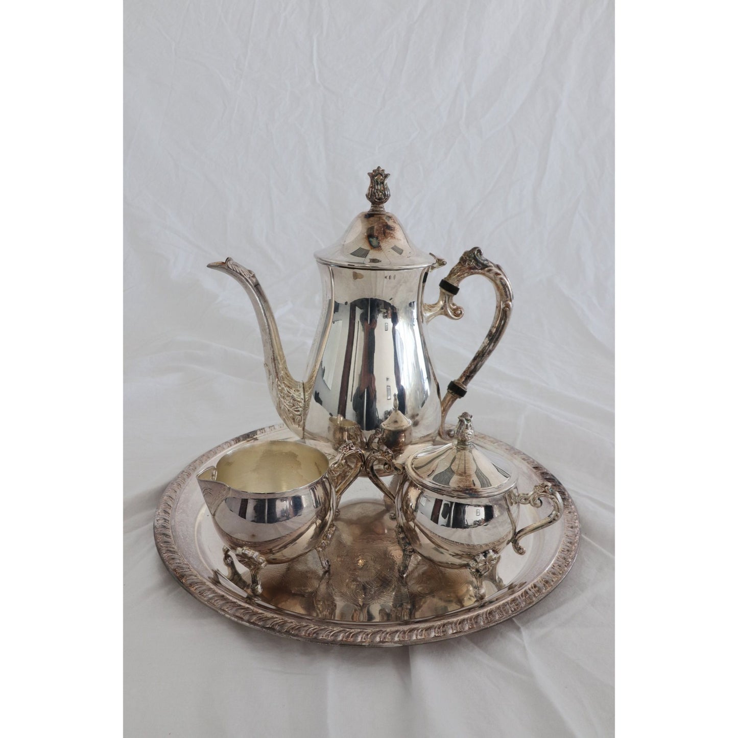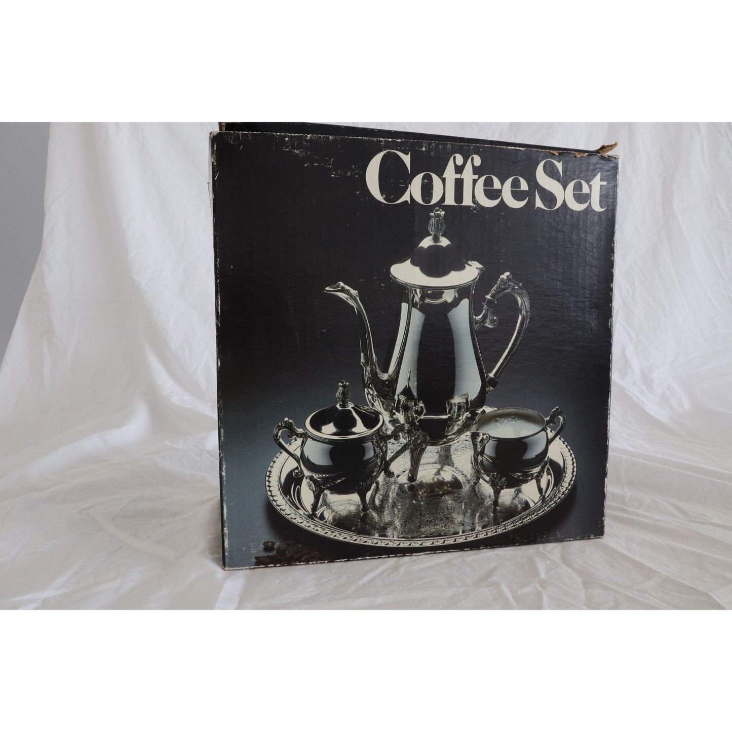 Vintage Leonard Silver Mfg Coffee Set Four Piece Coffee Pot Sugar Creamer Tray 1979