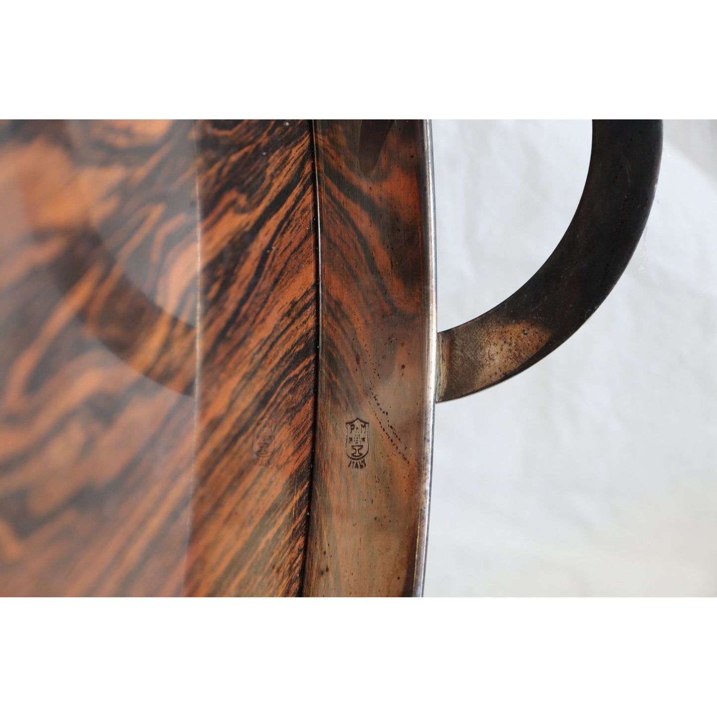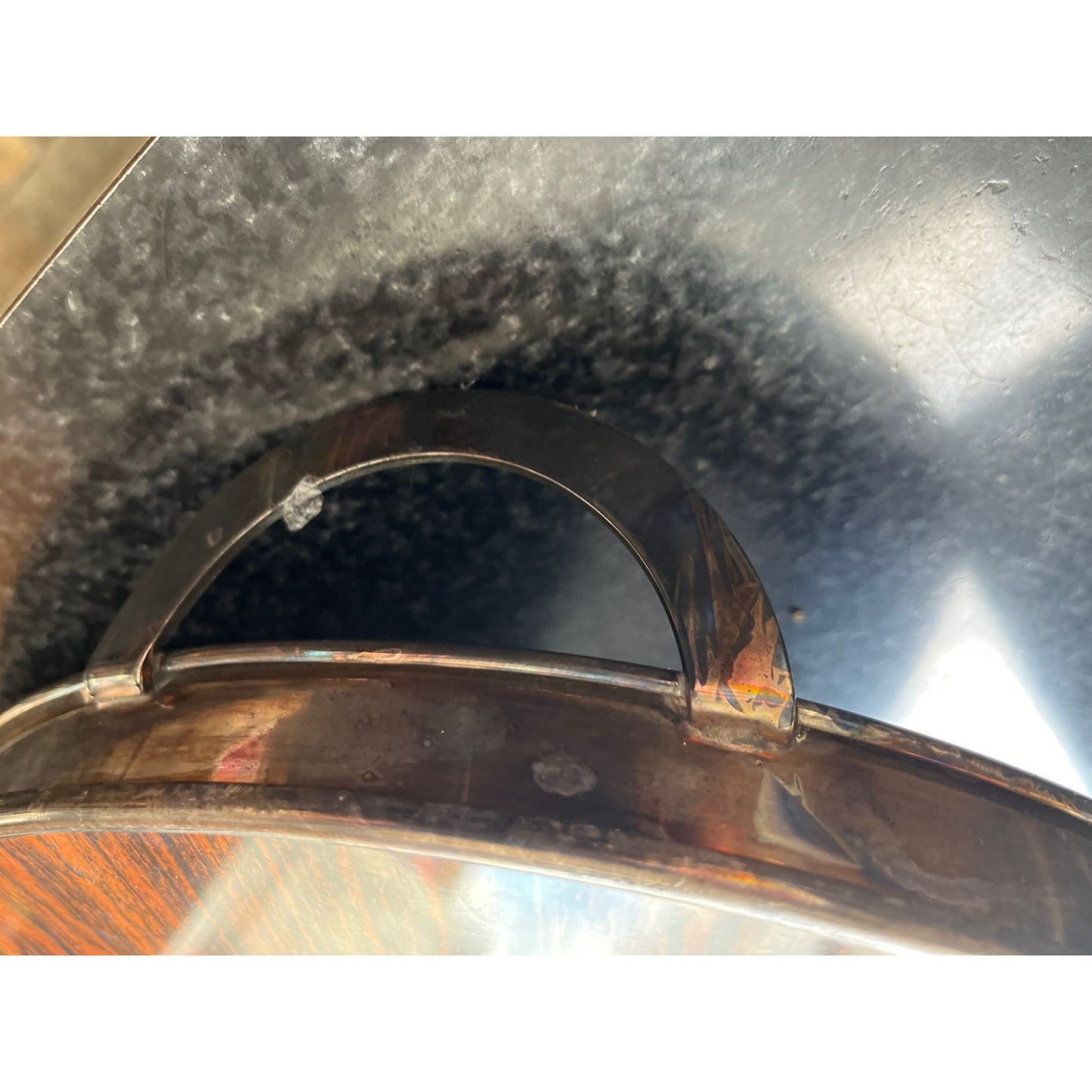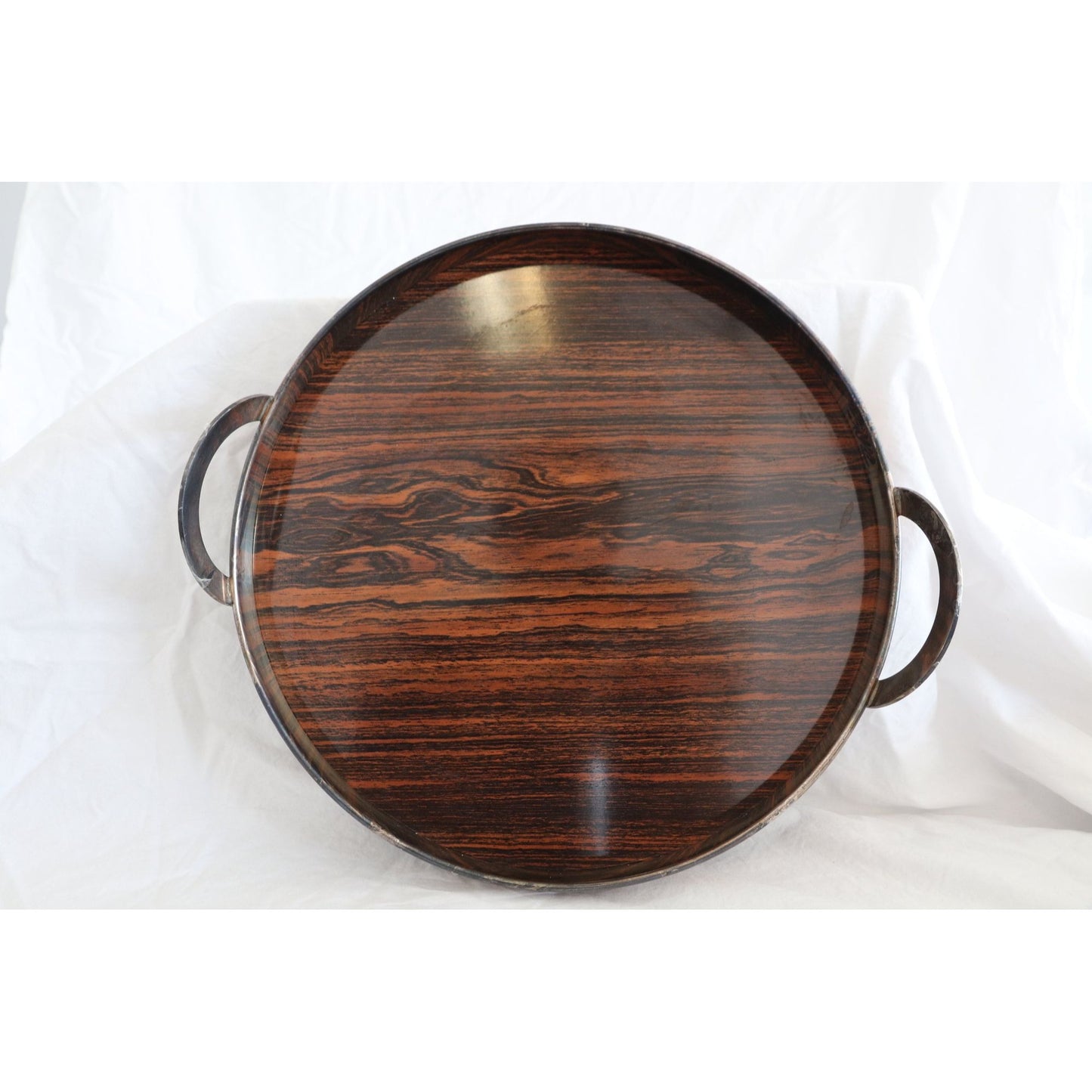 Vintage Serving Tray With Silver Plated Handles Hard Metal Base Wood Pattern With 1" Lip MMC