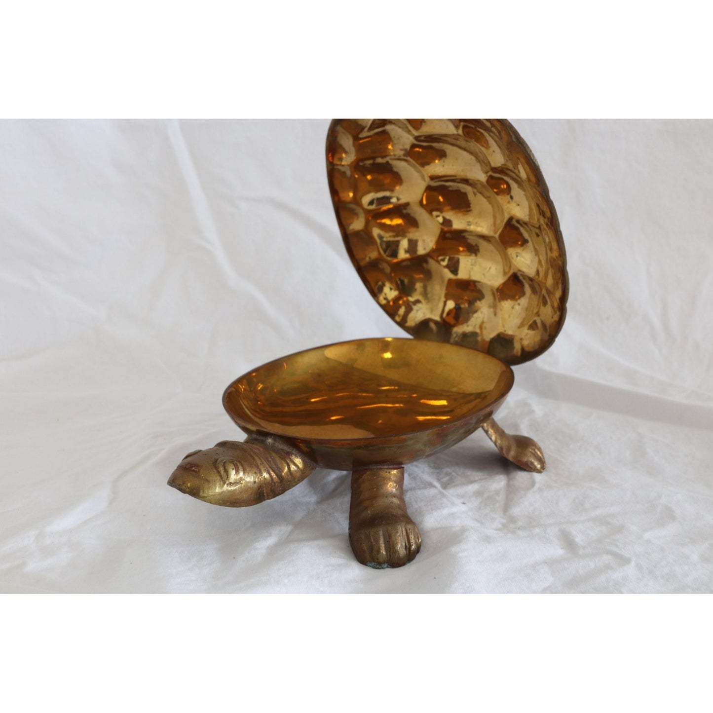 Vintage Solid Brass Turtle Trinket Box Hinged Lid