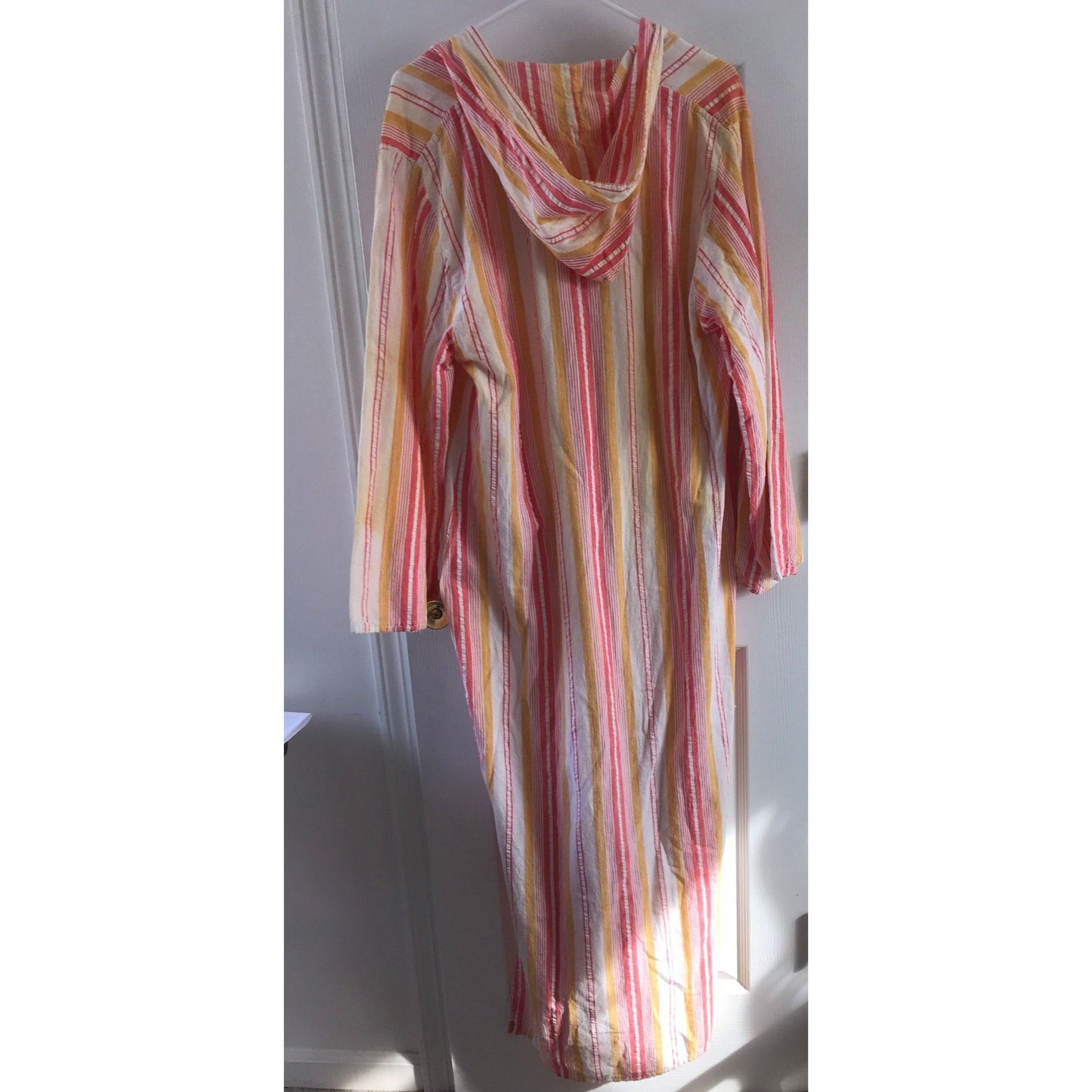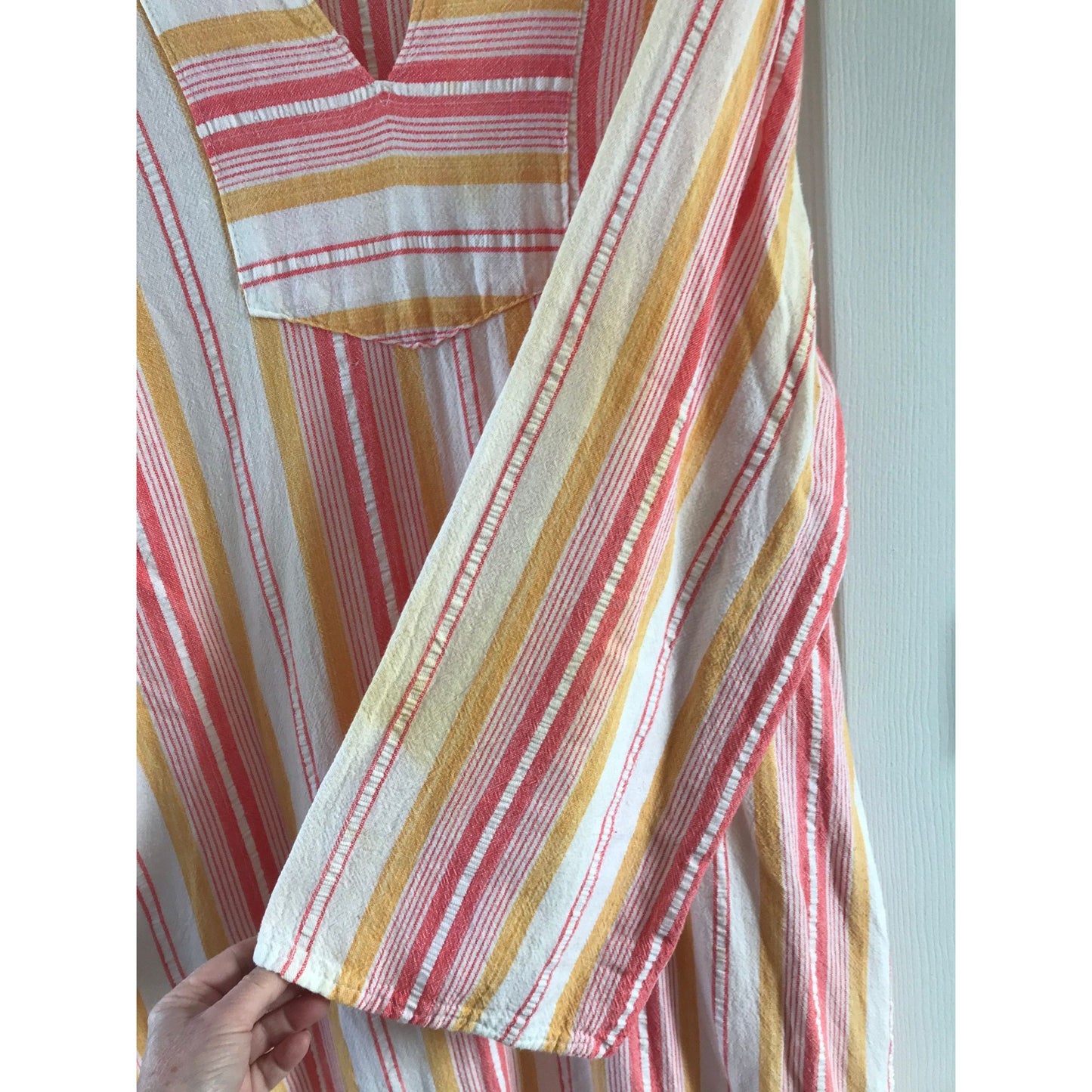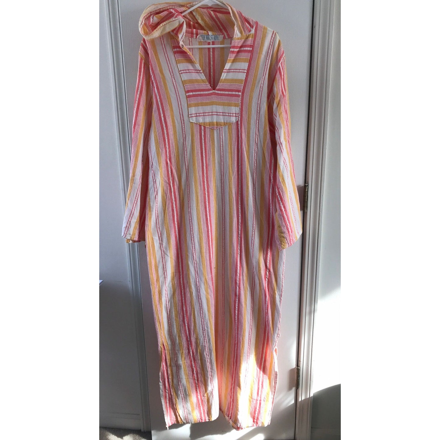 Vtg 1973 Alex Condarinis Designer Maxi Kaftan Dress Mykonos Greece Handmade Hand Dyed Pink Gold White Hand Woven