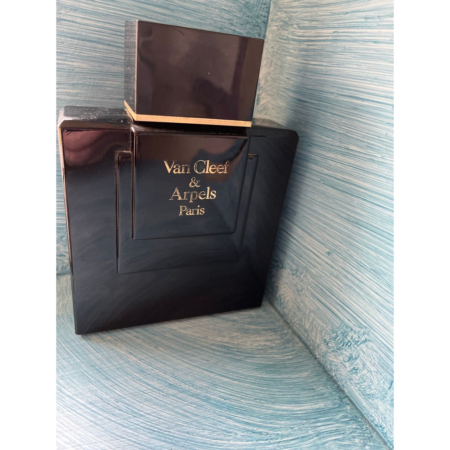 Gorgeous black glass bottle with gold "Van Cleef & Arpels Paris" slightly worn.