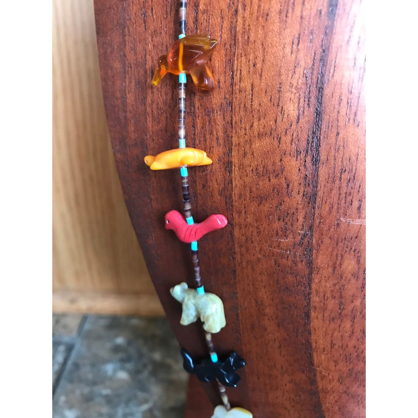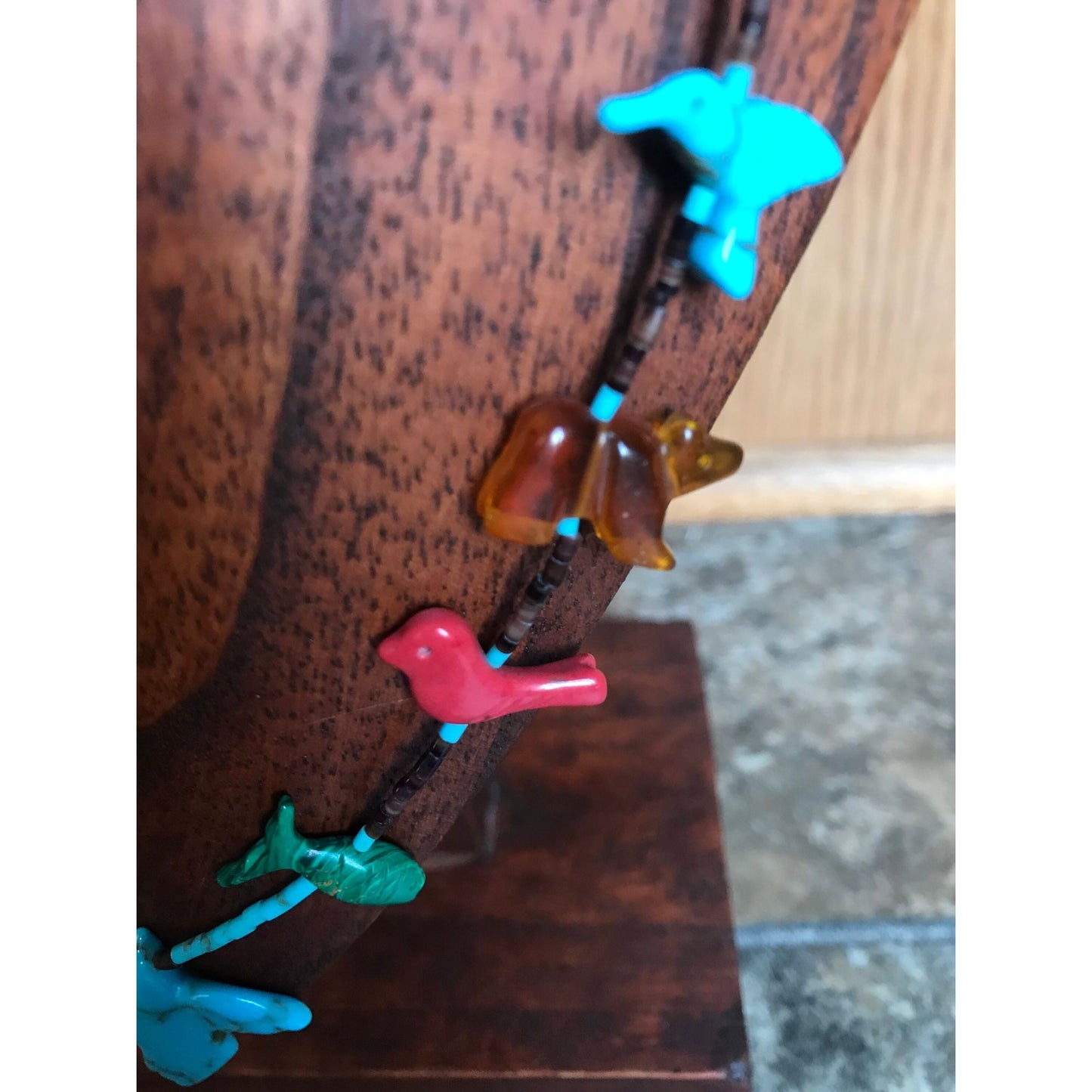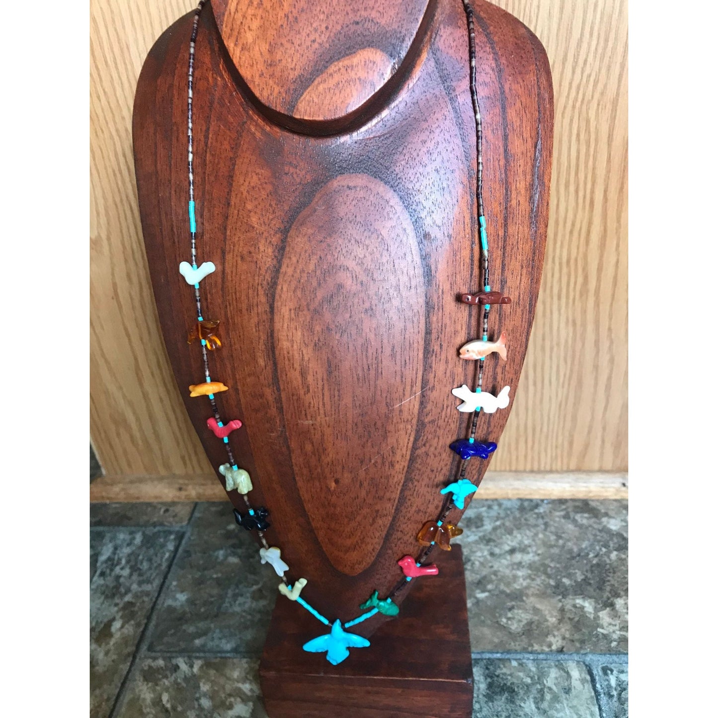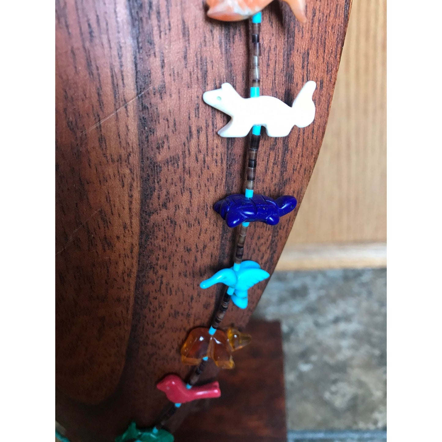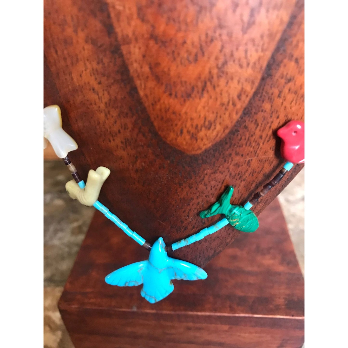 Vtg Zuni Fetish Necklace Native American Hand Carved Turquoise Thunderbird Center Various 17 Animals & Stones
