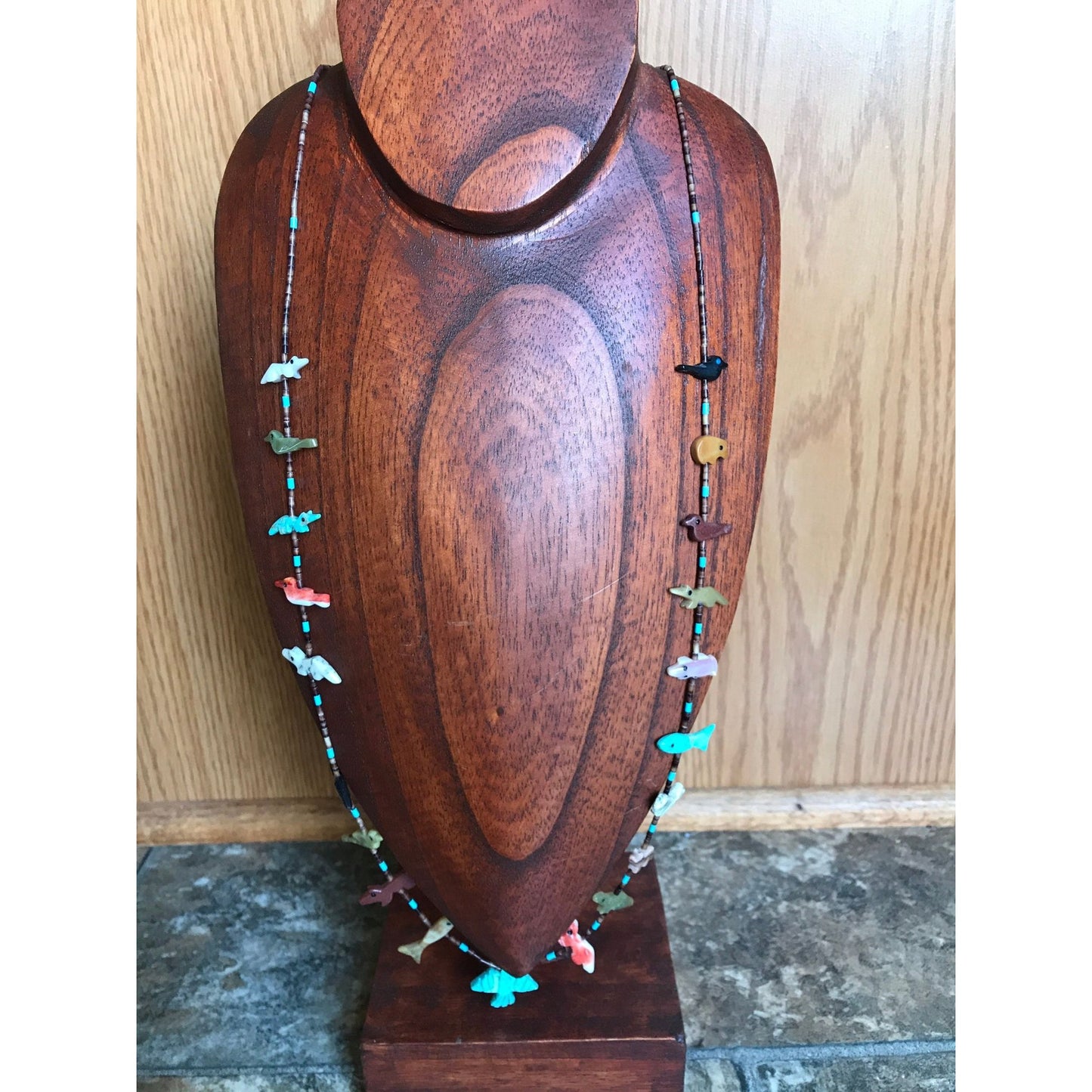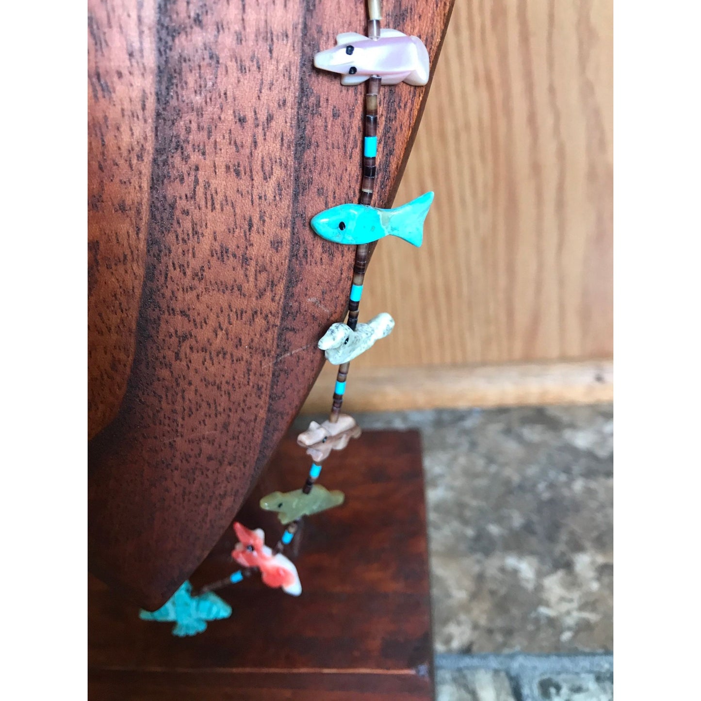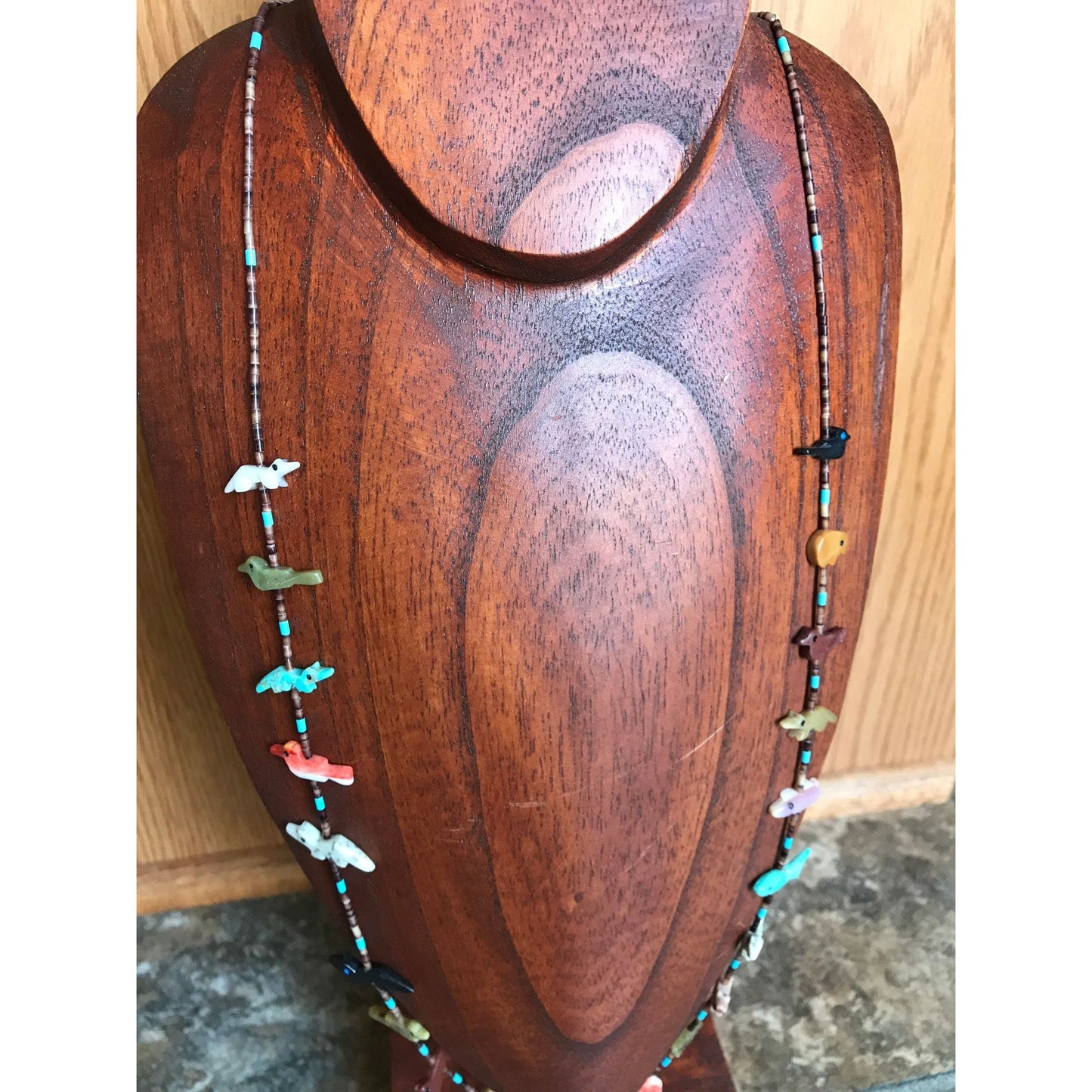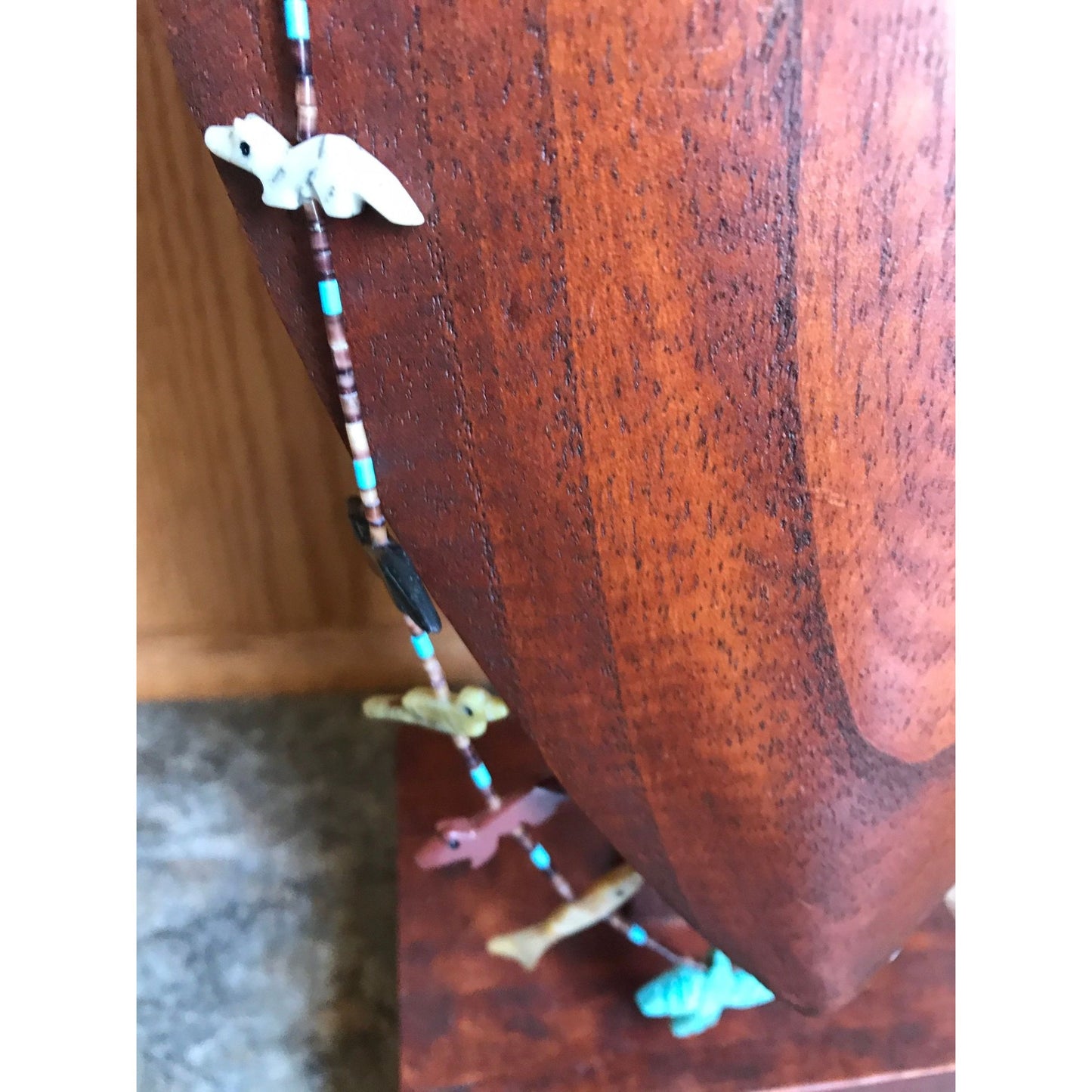 Vtg Zuni Fetish Necklace Native American Hand Carved Turquoise Thunderbird Center Various 20 Animals & Stones