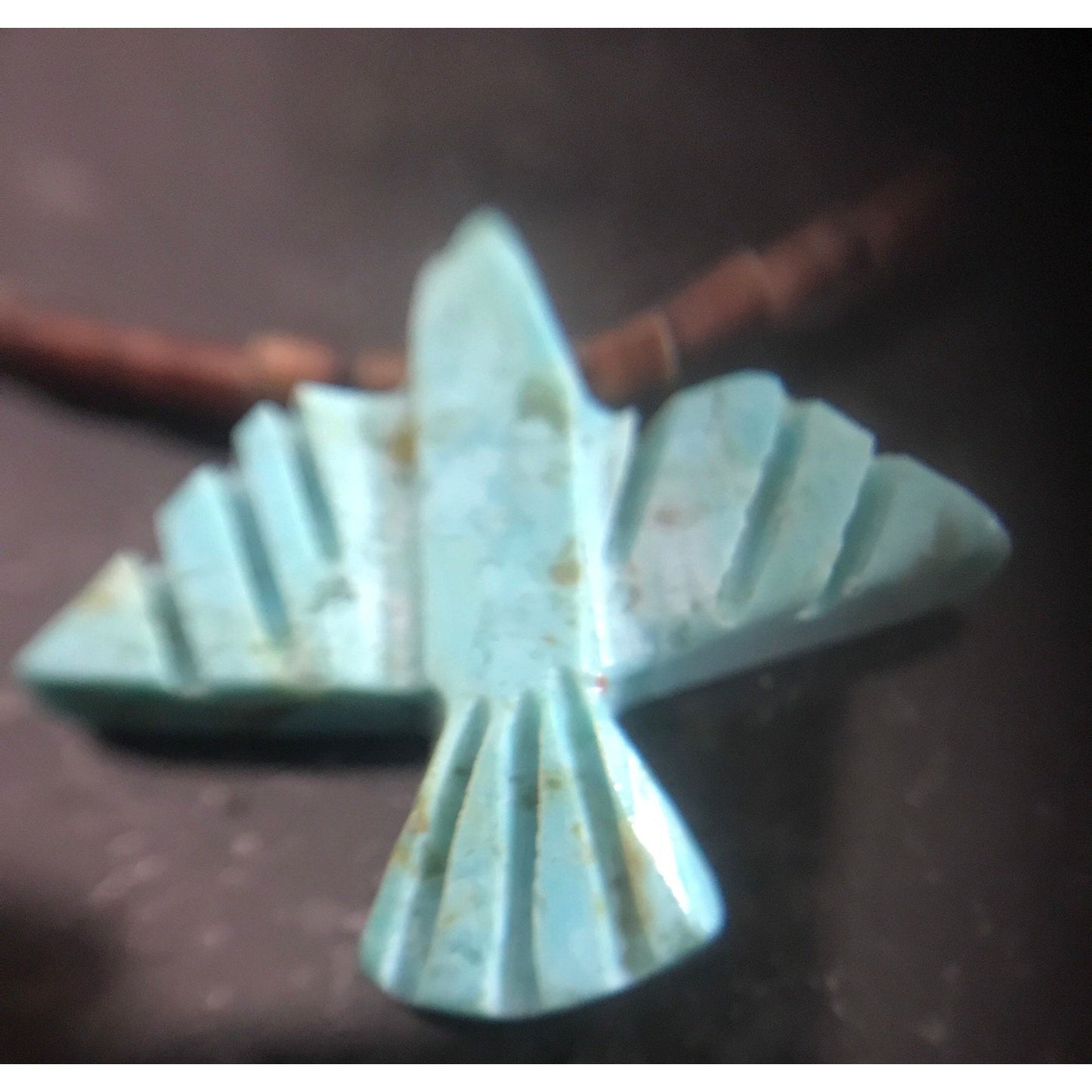 Multi colored stones and textures are hand carved into 20 different animals. The center pendant is an amazing hand carved turquoise thunderbird with tremendous detail.